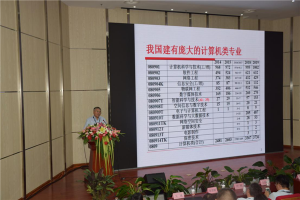 陳鐘教授以《新工科背景下“數據科學與大數據技術“專業建設與發展》為主題,闡釋了信息社會數字經濟發展動力,分析了當前數據科學與大數據專業發展現狀與特點,并倡導貫徹《國標》,推動大數據人才培養方案的創新。